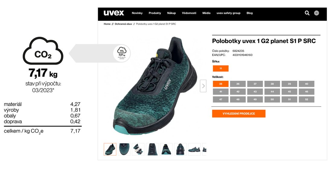 Aby byly emise skleníkových plynů u našich výrobků v rámci celého dodavatelského řetězce zcela transparentní a abychom svým zákazníkům poskytli rozsáhlý přehled naší uhlíkové stopy, vypočítáváme uhlíkovou stopu našich výrobků. Společnost uvex počítá uhlíkovou stopu výrobků podle metody stanovené normou ISO 140671.